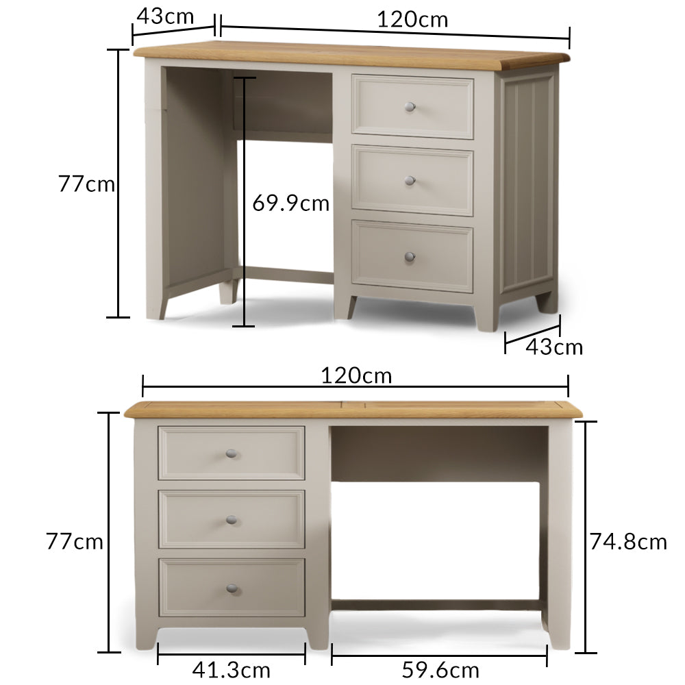 Crafted using traditional methods, the Hemsby Dressing Table features a durable solid hardwood frame with a smooth soft white painted finish, topped with 100% solid oak.