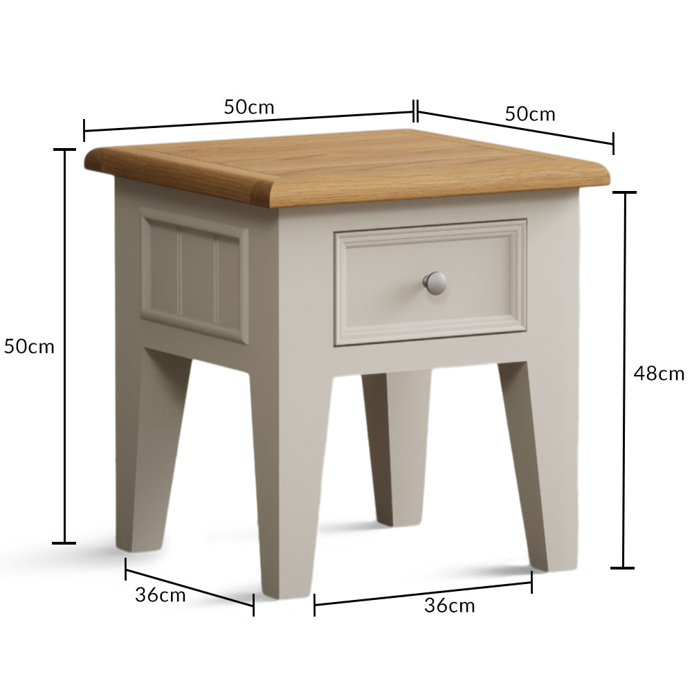 Crafted using traditional methods, the Hemsby Lamp Table features a durable solid hardwood frame with a smooth soft white painted finish, topped with 100% solid oak.