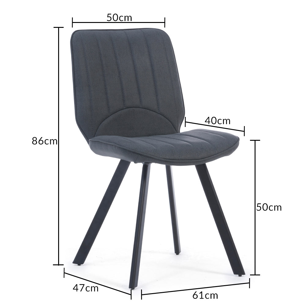 The Hendrick Grey Faux Leather Dining Chairs (Pair) is contemporary, stylish and beautifully crafted. With a stunning stitched design, this faux leather chair makes a statement in any dining space.