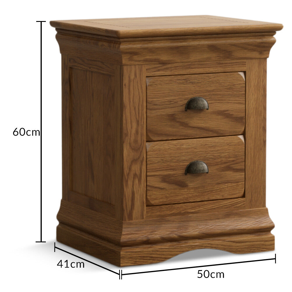 Hulbury Rustic Solid Oak 2 Drawer Bedside Table
