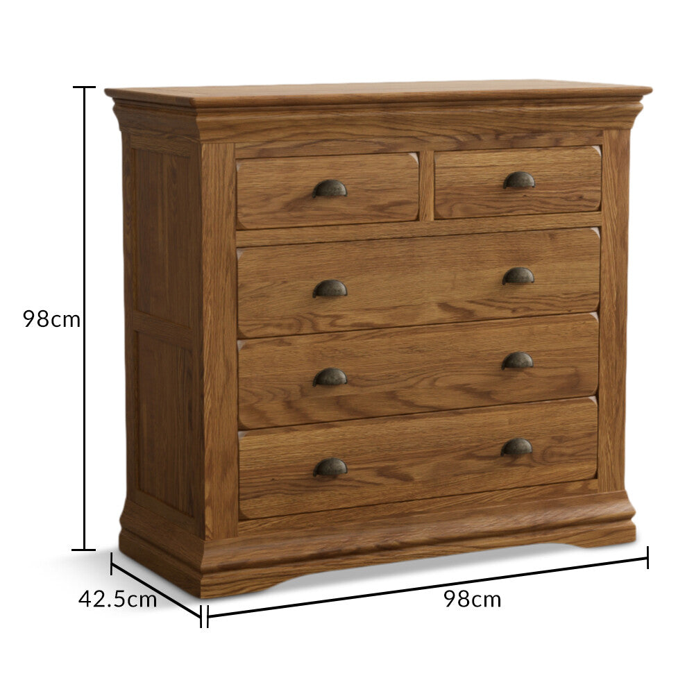 Hulbury Rustic Solid Oak 2 Over 3 Chest of Drawers