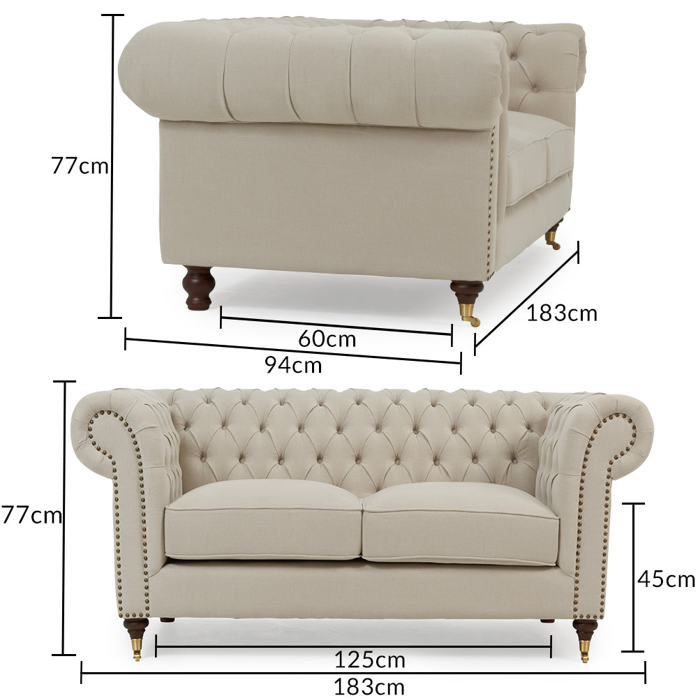 Carrara Chesterfield Ivory Linen 2 Seater Sofa
