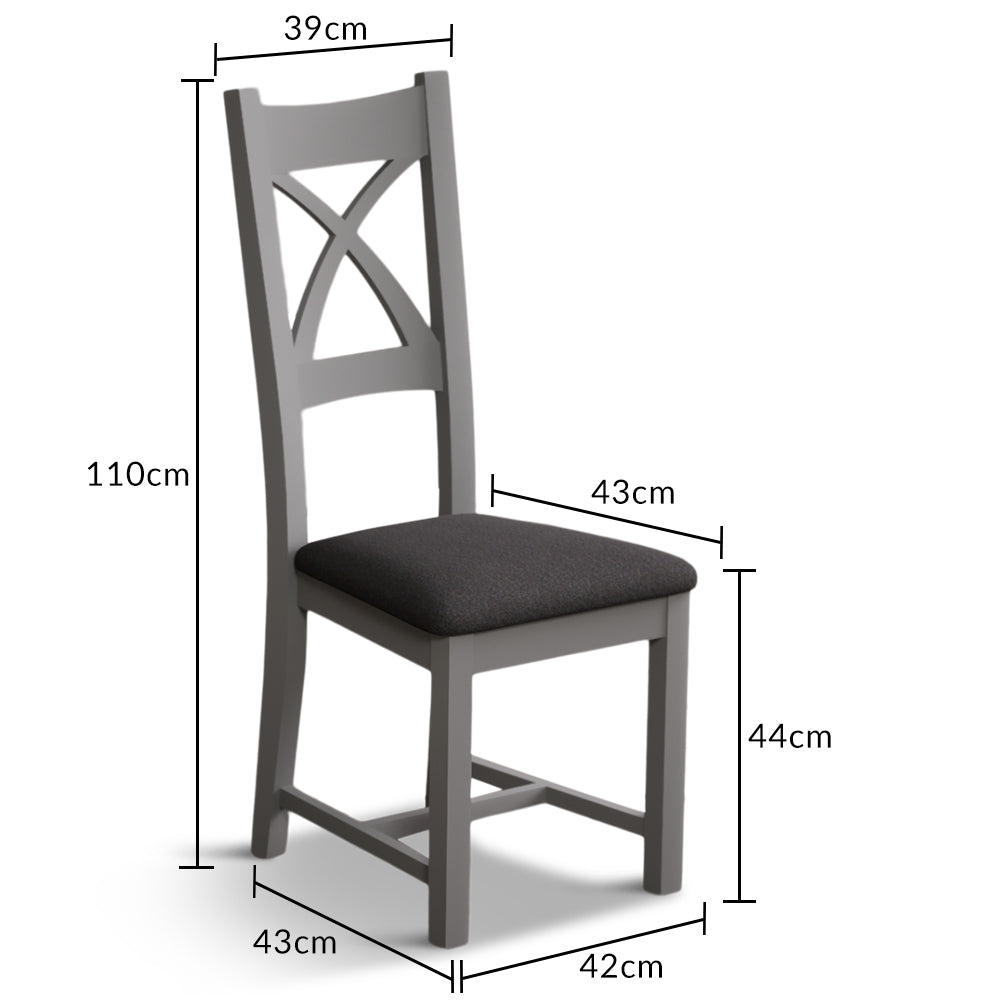 Painted Light Grey X Back Dining Chairs (Pair) with Charcoal Grey Fabric Seat Pad