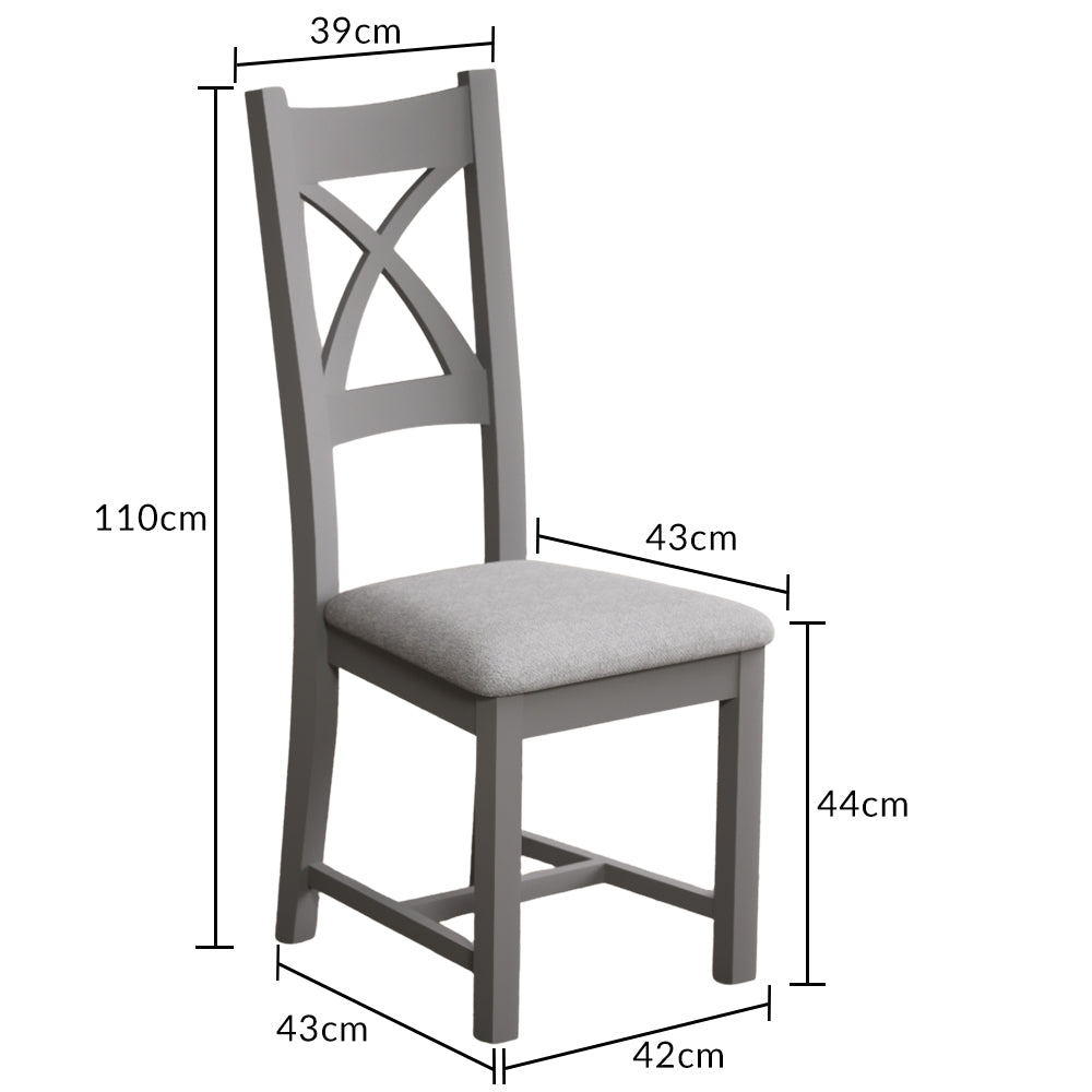Painted Light Grey X Back Dining Chairs (Pair) with Light Grey Fabric Seat Pad
