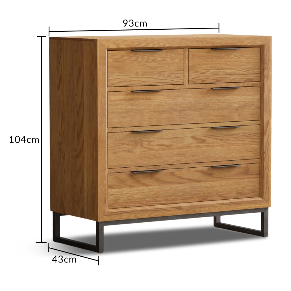 Loft Solid Oak 2 Over 3 Chest of Drawers