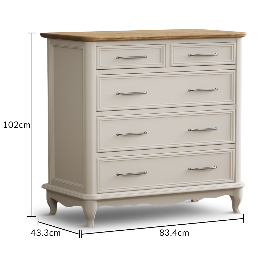Maison Oak and Soft White Painted 2 Over 3 Chest of Drawers