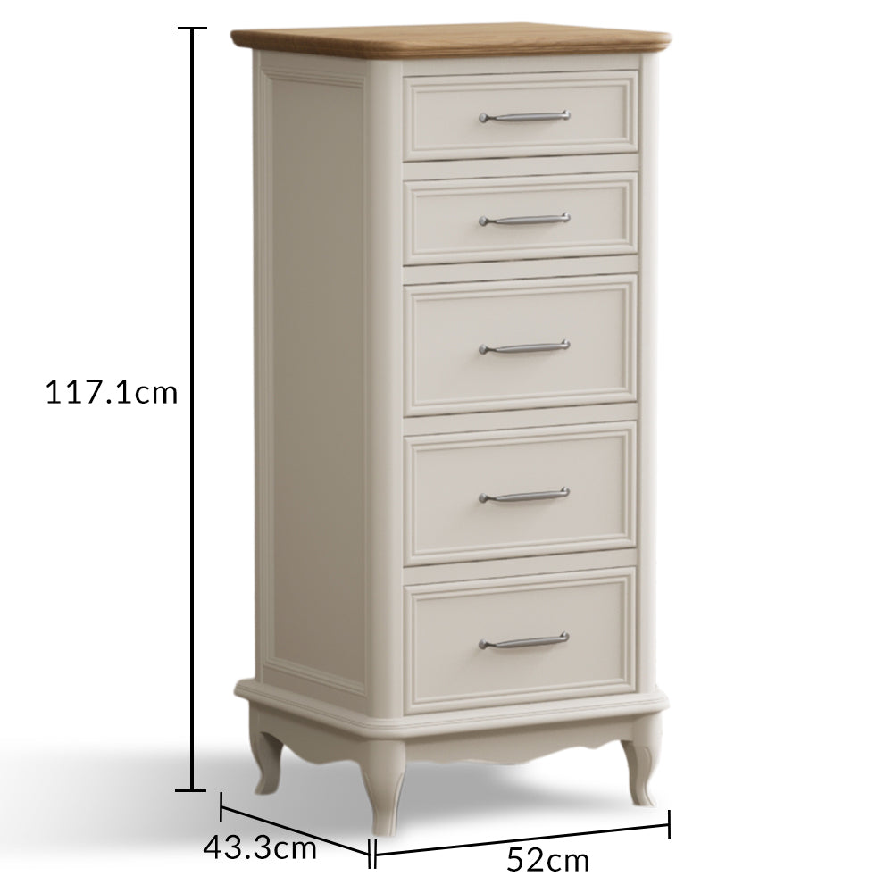 Maison Oak and Soft White Painted 5 Drawer Tallboy