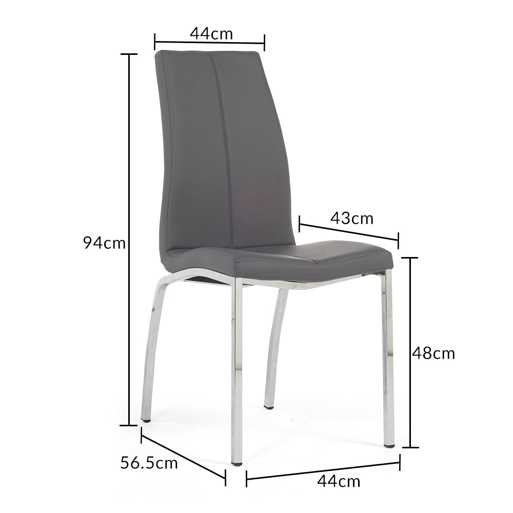The Marco dining chair is finished in comfortable grey faux leather. Simplistic and modern this dining chair would pair beautifully with our high-gloss tables.