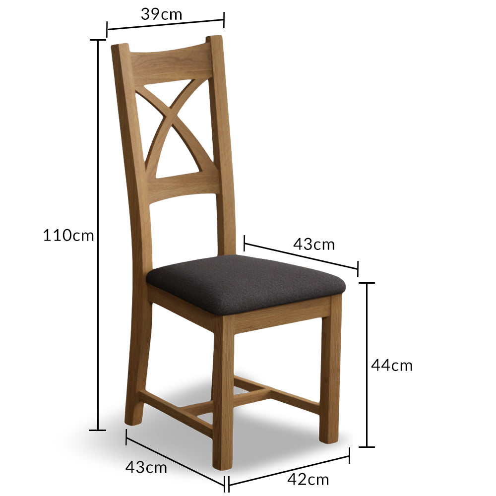 Natural Solid Oak X Back Dining Chairs (Pair) with Charcoal Grey Fabric Seat Pad