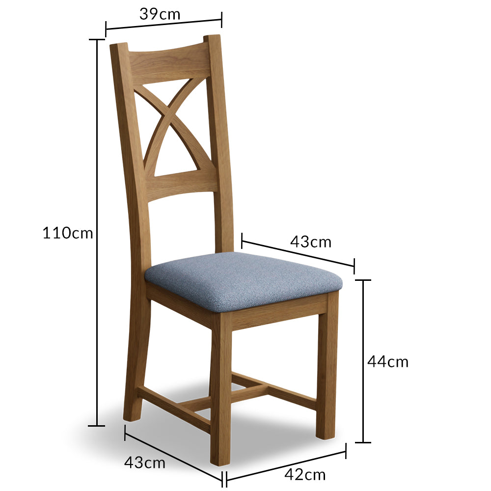 Natural Solid Oak X Back Dining Chairs (Pair) with Sky Blue Fabric Seat Pad