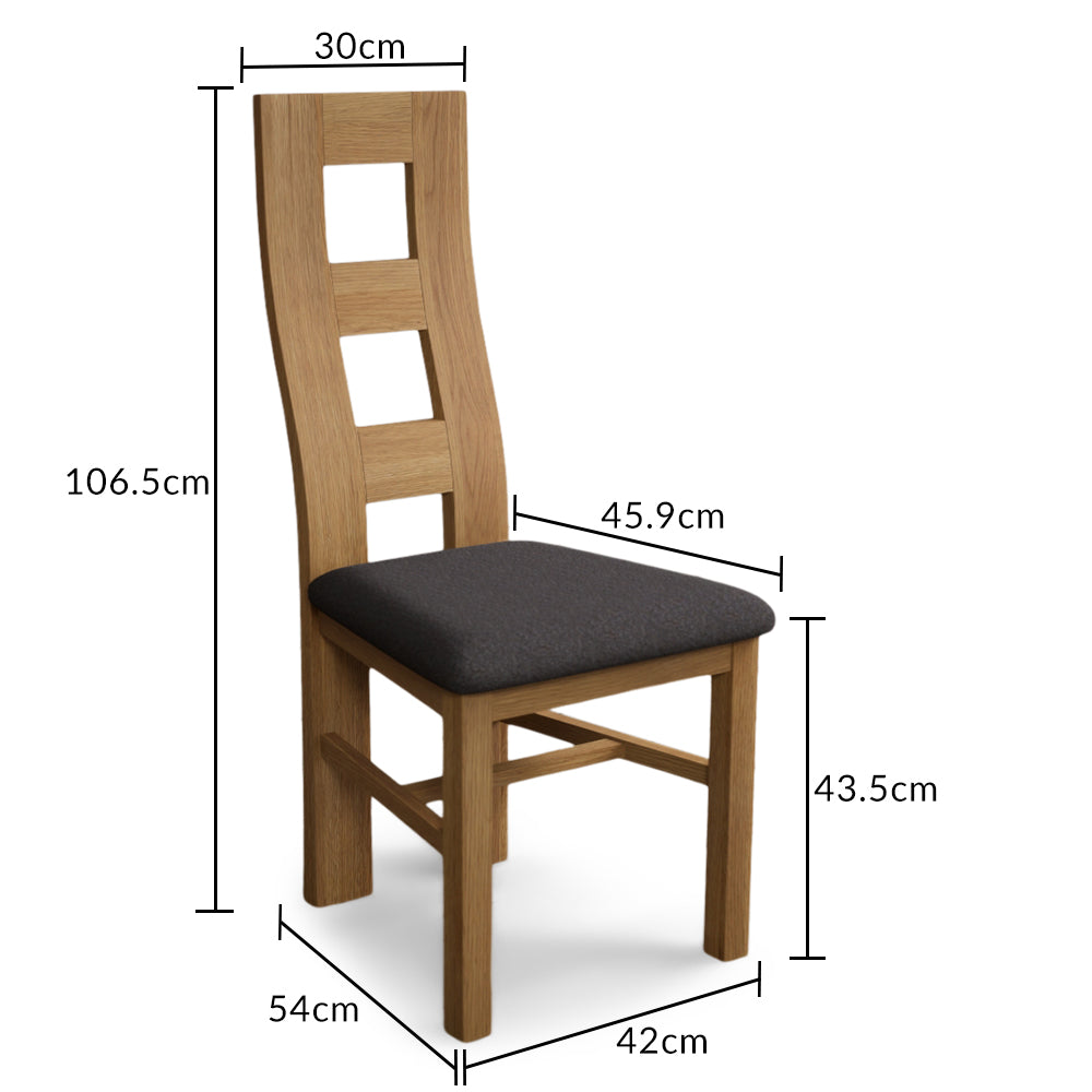 Natural Solid Oak Flow Back Dining Chairs (Pair) with Charcoal Grey Fabric Seat Pad