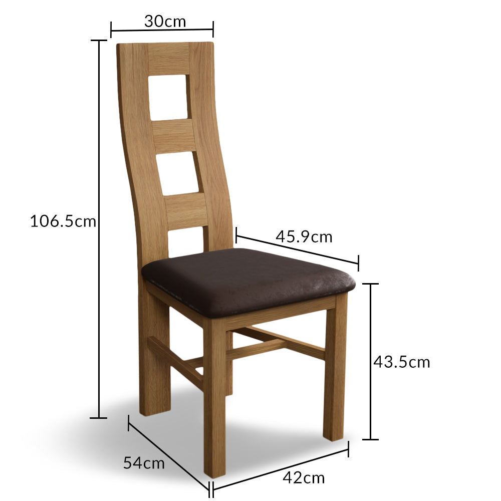 Natural Solid Oak Flow Back Dining Chairs (Pair) with Chocolate Brown Leather Seat Pad