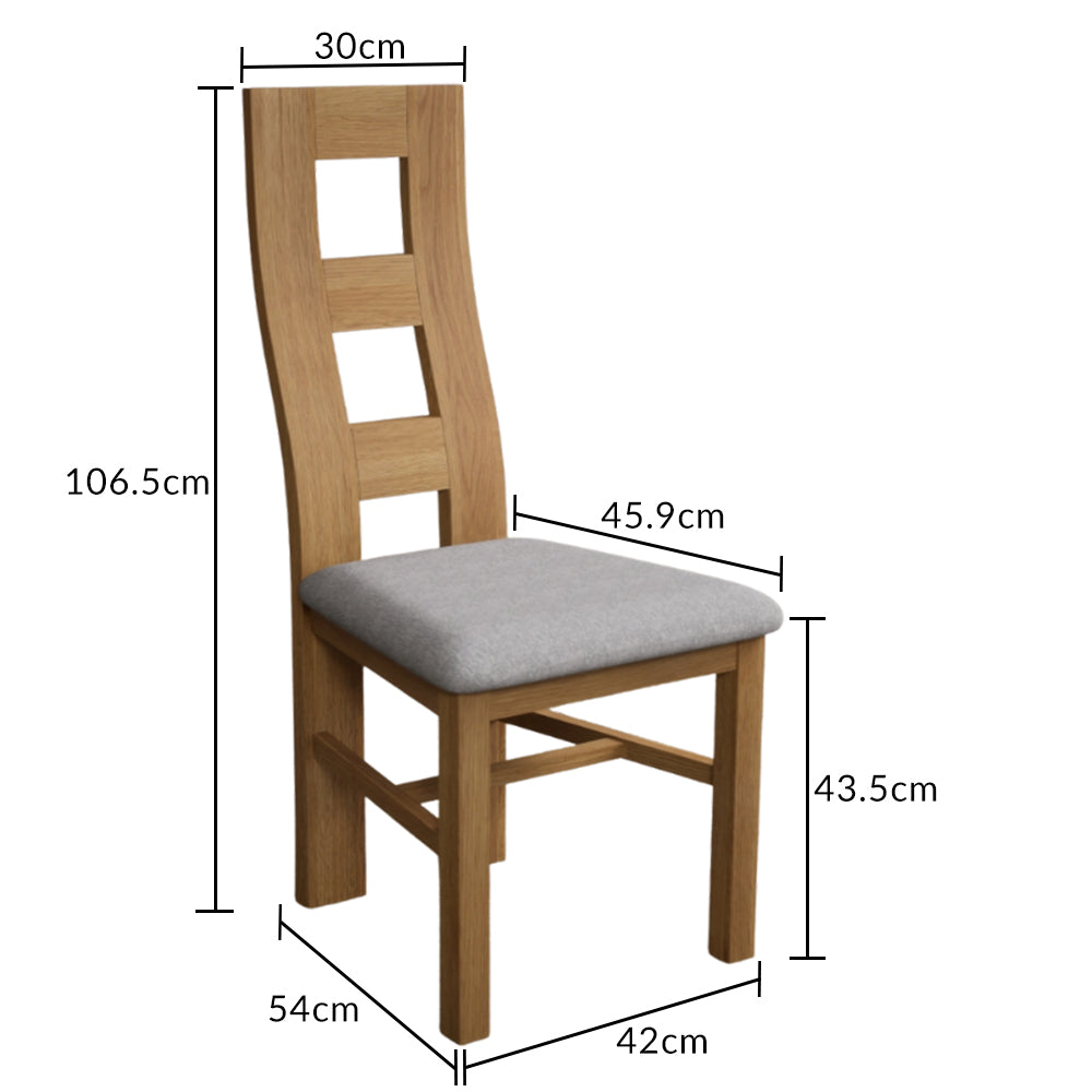 Natural Solid Oak Flow Back Dining Chairs (Pair) with Light Grey Fabric Seat Pad