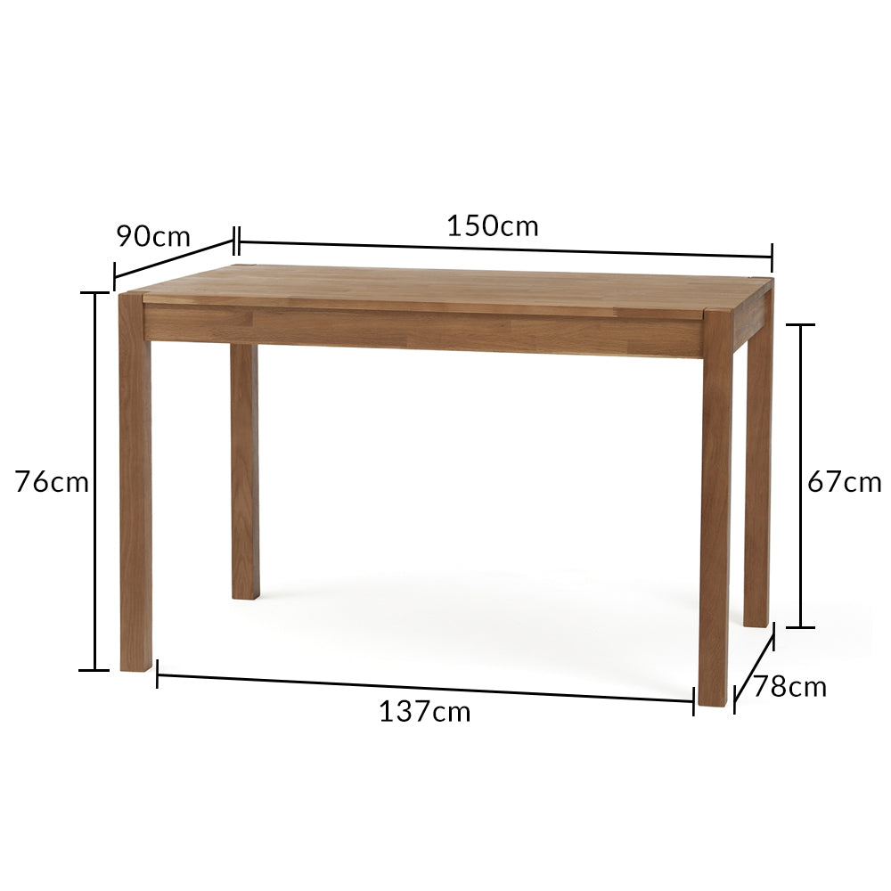 The Oakley 150cm Solid Oak Dining Table features an elegant minimalist design to complement any dining area. Chic and classic in style, the oak dining table is suitable for kitchens and dining rooms and comfortably seats 6 people.