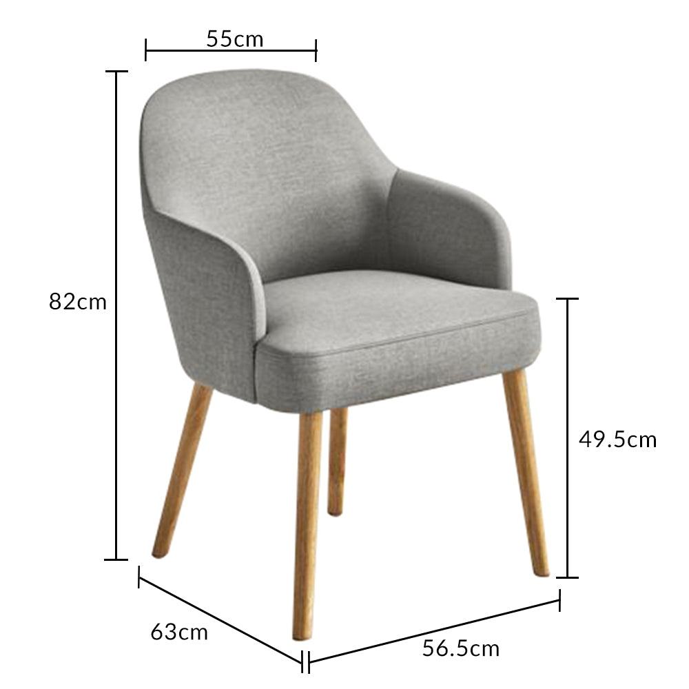 The Oscar Light Grey Fabric Chair brings stylish minimalist design to any space. With smooth fabric upholstery, this stunning chair is a fantastic alternative to more traditional dining chairs. Featuring a modern low back and arms, the Oscar is complete with tapered solid wood legs, making it the perfect match for solid oak dining tables.
