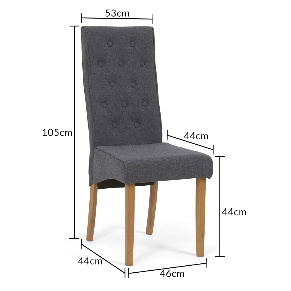 The Ottilie Grey Fabric Dining Chairs (Pair) has a classic diamond tufted design with contemporary shaping - a chair of pure beauty.