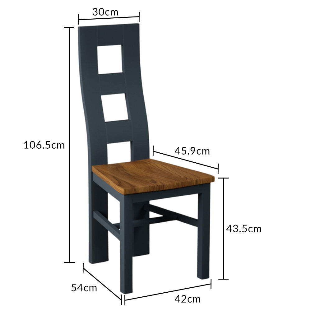 The Painted Dark Blue Flow Back Dining Chairs are a stunning addition to your rustic oak dining table. Crafted from 100% solid hardwood, the chairs feature a dark blue painted finish and elegant curved backrest.