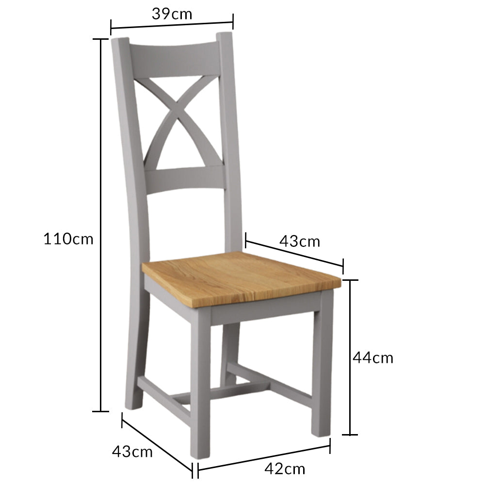 Painted Light Grey X Back Dining Chairs (Pair) with Oak Seat Pad