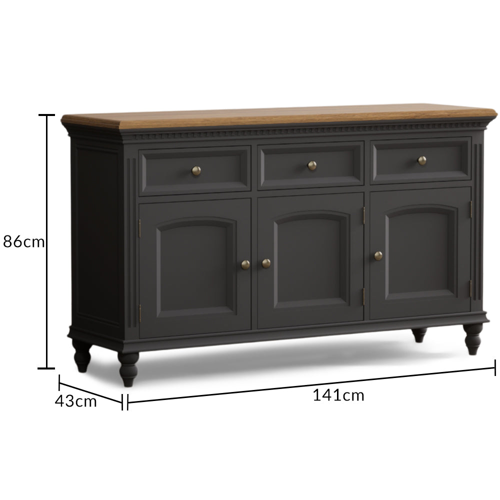 • With a traditional look, the sideboard is completed in a charcoal grey finish