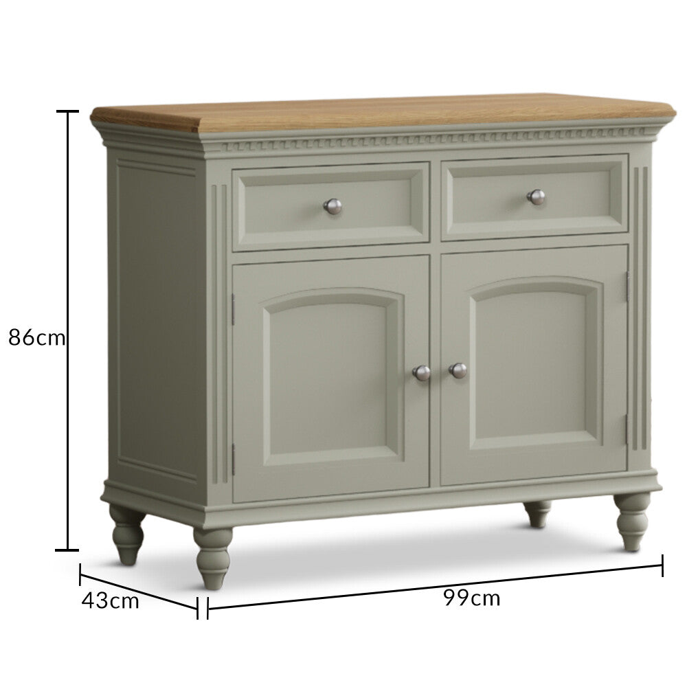 Enhance your home with the charming and compact Philippe Oak and Soft Green Painted Small Sideboard. Perfectly designed for tighter spaces, this sideboard provides ample storage while adding a touch of elegance to your living area.
