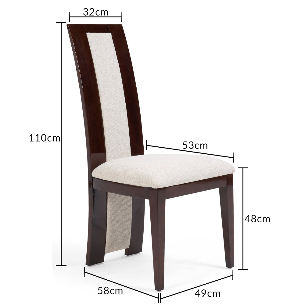 Carefully crafted from solid wood, the chairs feature a distinctly curved floor length backrest and are complete with a stunning brown high gloss finish.
