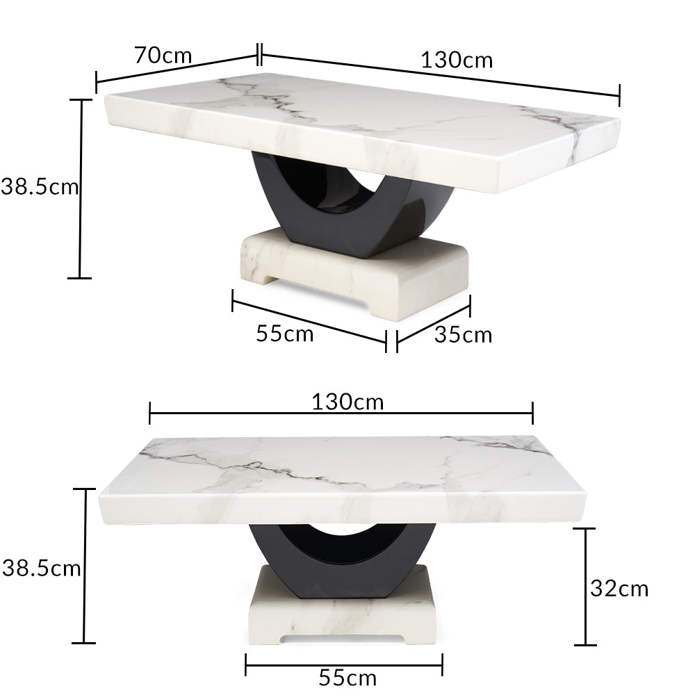 The Renoir White Marble Coffee Table will make a statement in any modern home. Featuring a bold design with a black, curved support contrasting with a white marble top and base, the console table is sturdy and stylish. Sleek and contemporary, the marble coffee table is complete with a wipe-clean finish.