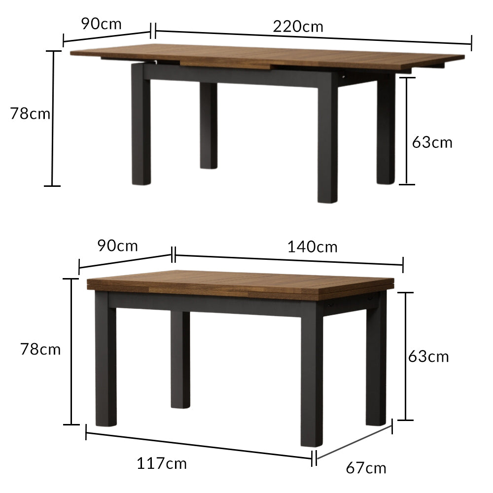 Extending Romney 140cm Oak and Charcoal Grey Painted Dining Table