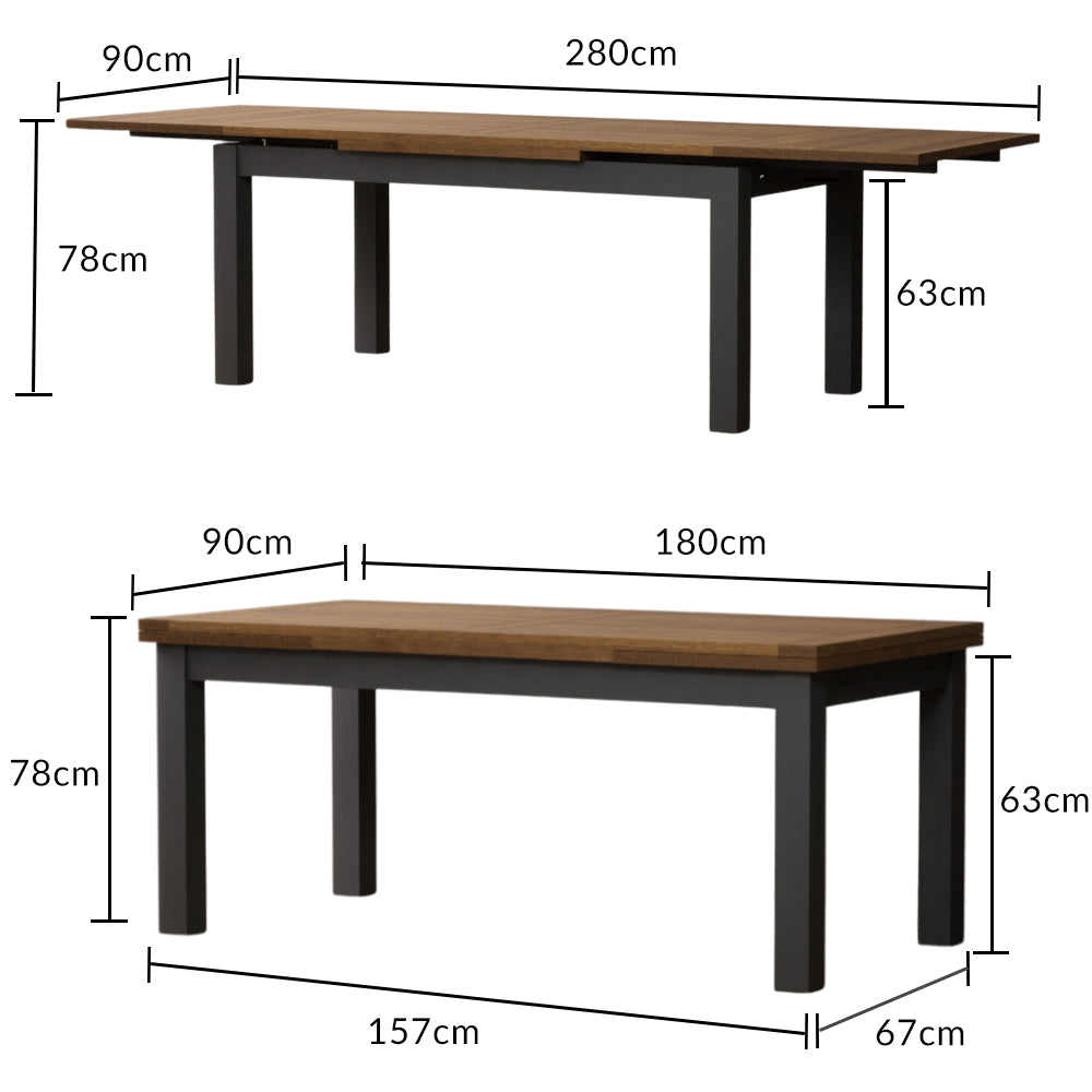 Extending Romney 180cm Oak and Charcoal Grey Painted Dining Table