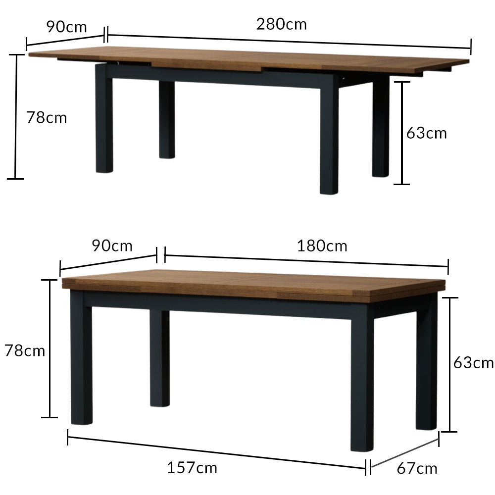 Extending Romney 180cm Oak and Dark Blue Painted Dining Table