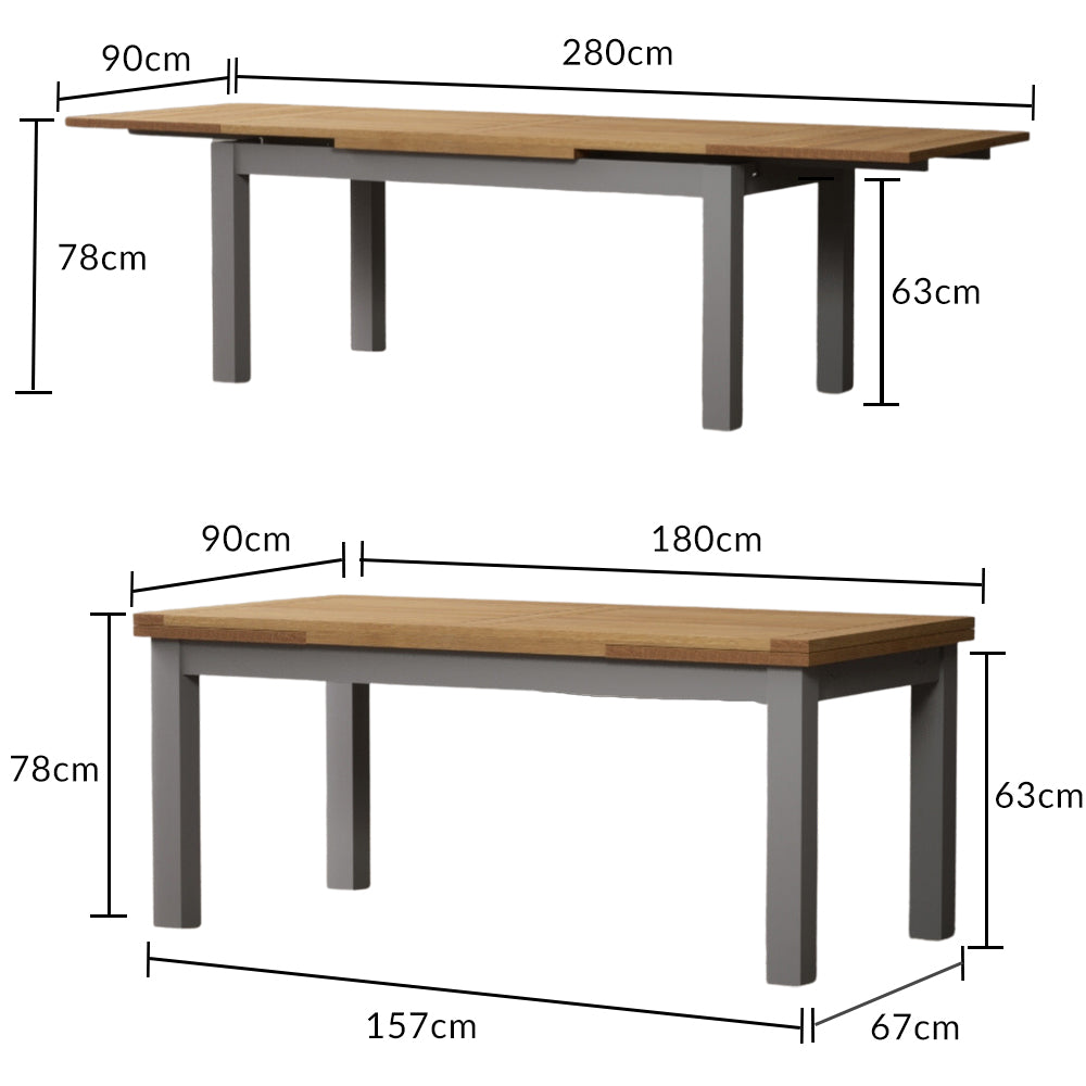 Extending Romney 180cm Oak and Light Grey Painted Dining Table