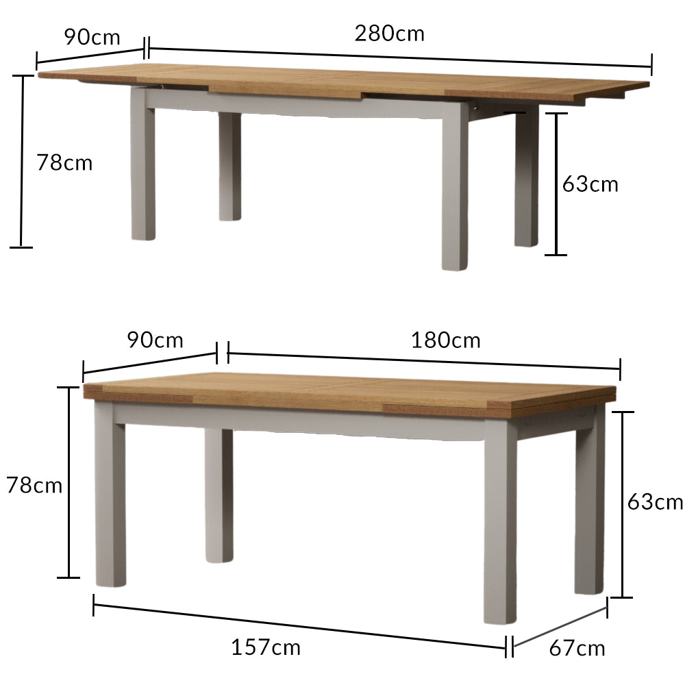 Extending Romney 180cm Oak and Soft White Painted Dining Table