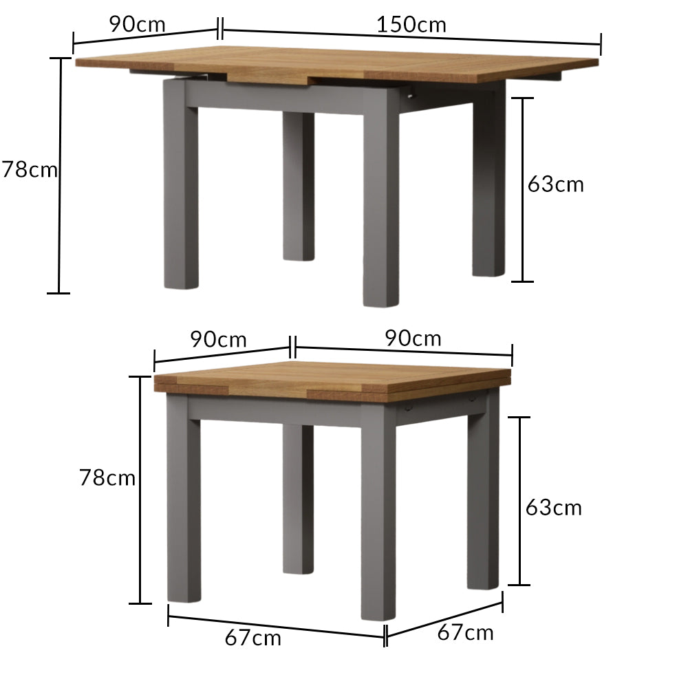 Extending Romney 90cm Oak and Light Grey Painted Dining Table