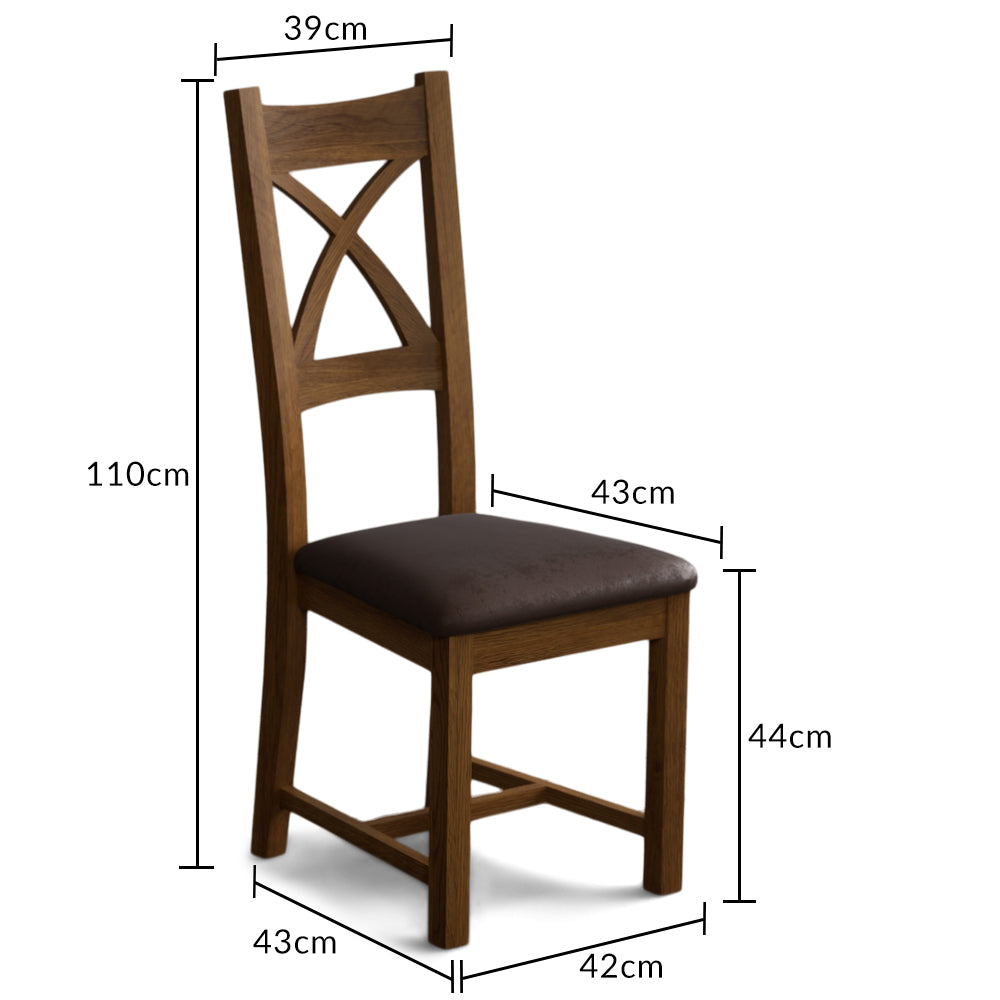 The Rustic Solid Oak X Back Dining Chairs are a stunning addition to your rustic dining table. Crafted from 100% solid oak, the chairs feature a classic cross design on the backrest and are complete with comfortable seat pads.