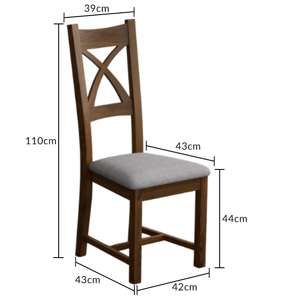 Rustic Solid Oak X Back Dining Chairs (Pair) with Light Grey Fabric Seat Pad