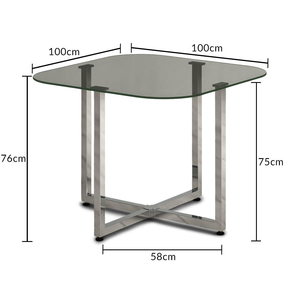 Turn heads with the modern and space-saving Santorini table. A glass surface with gently curved corners combines with sleek chrome legs for a stunning contemporary look.
