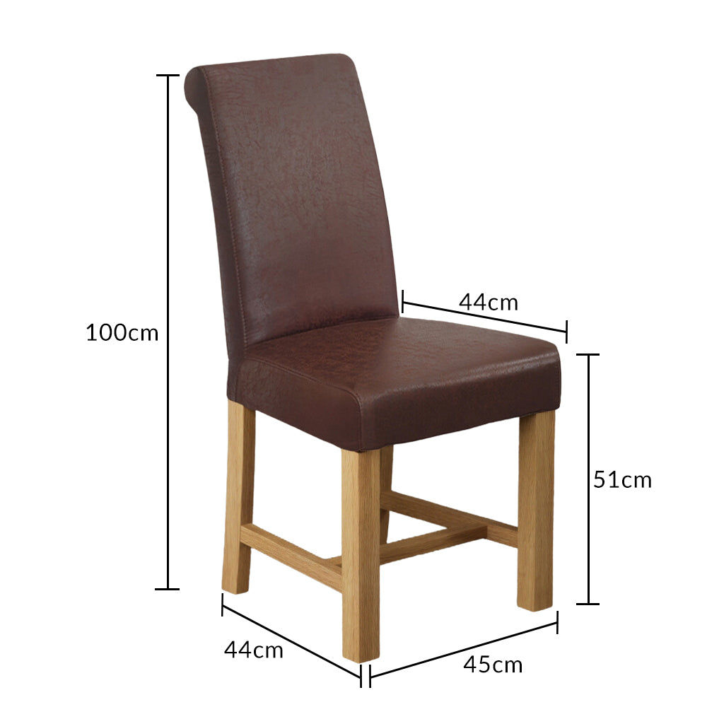 Scroll Back Braced Antiqued Brown Suede Fabric Dining Chairs (Pair)