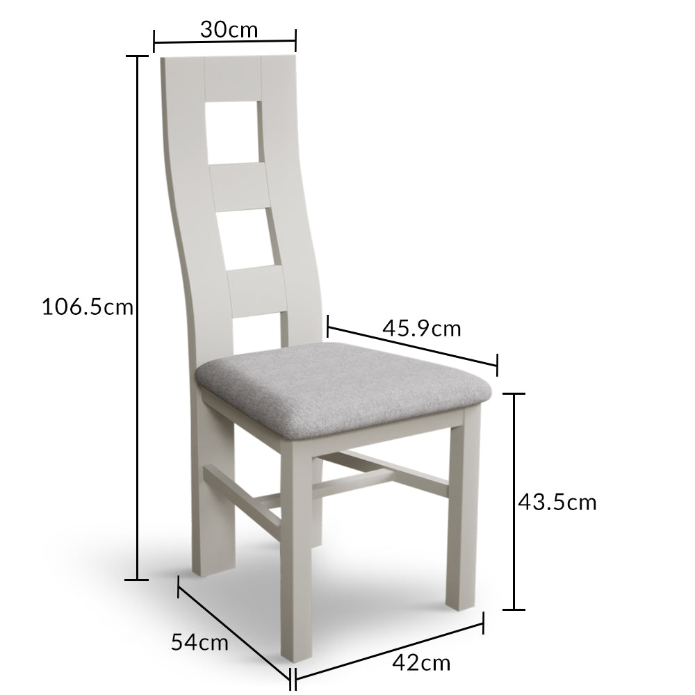 The Signal White Flow Back Chair with Light Grey Fabric Seat Pad is an expertly crafted, beautifully designed dining chair with a stylish curved flow-back design. Made from durable 100% solid wood, the dining chair features a fresh white painted finish and is complete with a comfortable seat pad upholstered in smooth light grey fabric.