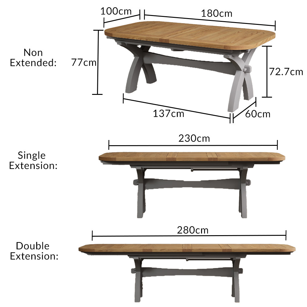 Extending Stoneleigh 180cm Oak and Light Grey Painted Dining Table
