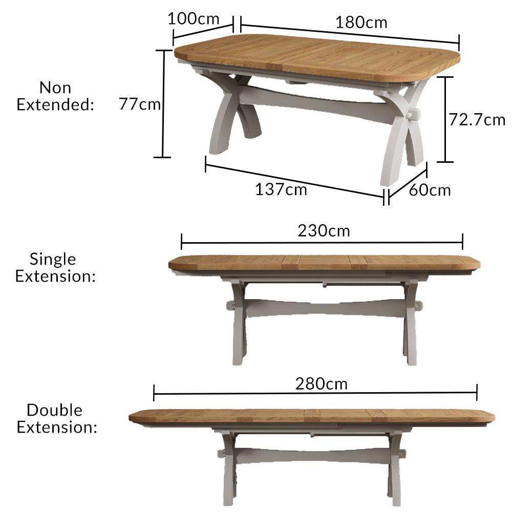 Extending Stoneleigh 180cm Oak and Soft White Painted Dining Table