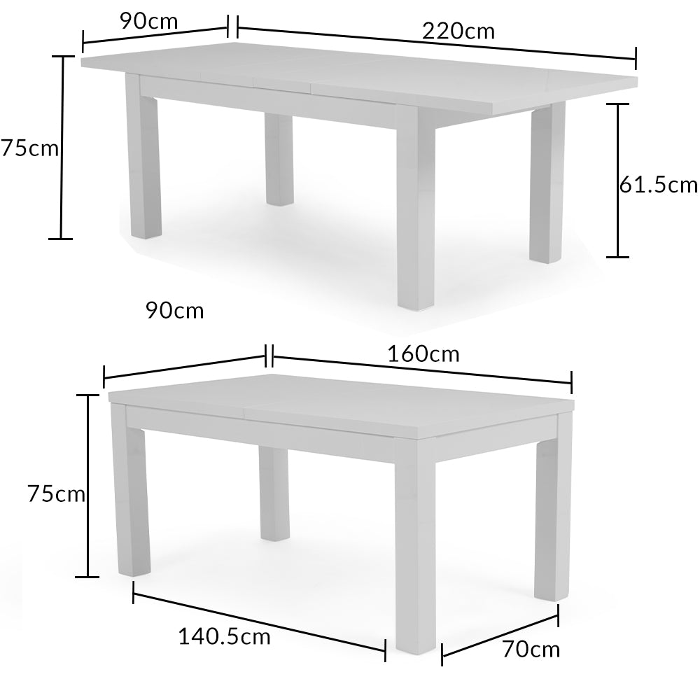 The Extending Vancouver 160cm Light Grey High Gloss Dining Table features a minimal, clean design, crafted from our sturdy solid wood. Already boasting a 6-8 diner friendly length, an additional hidden centre section is exposed effortlessly via two gliding ends, to then comfortably house up to 10 when needed. Effortless to style and make your own with its sleek, minimal design. Strong and durable solid wood ensure its a table that lasts. A high gloss finish offers a chic feel, whilst being quick and easy to clean.