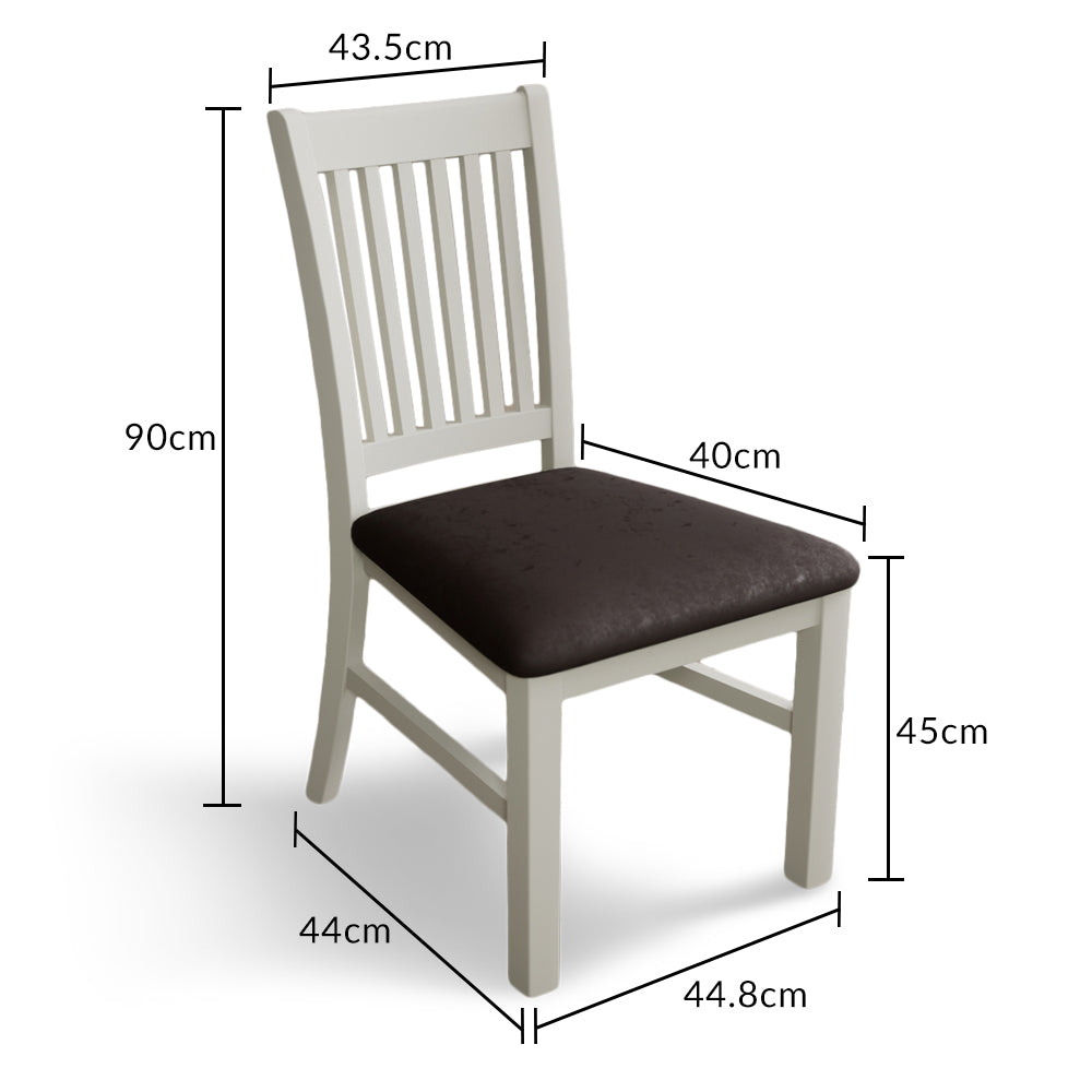 The Walton Signal White Painted Chair with Chocolate Brown Fabric Seat Pad is a classically stylish, beautifully crafted dining chair with a stunning slatted design on the backrest. Expertly crafted from durable solid hardwood, this dining chair features a smooth white-painted finish and is complete with a comfortable seat pad upholstered in chocolate brown fabric.