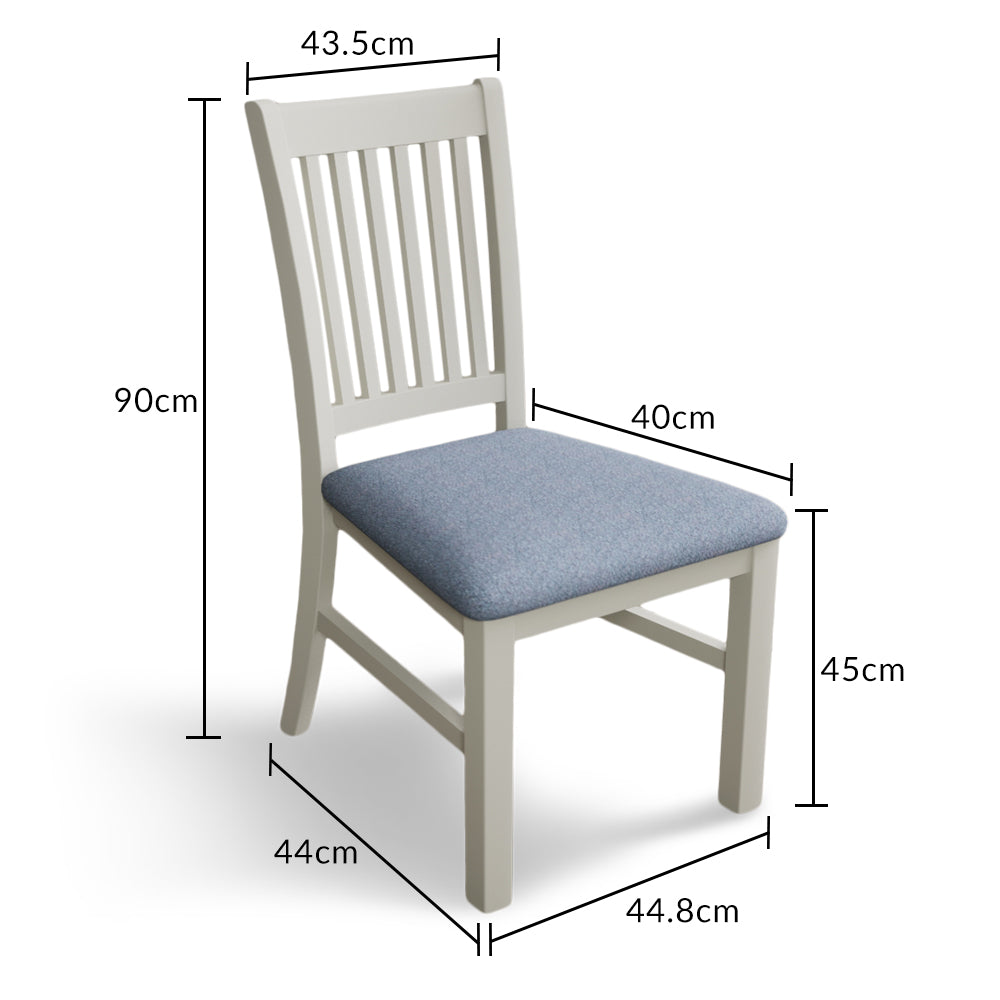 The Walton Signal White Painted Chair with Sky Blue Fabric Seat Pad is a classically stylish, beautifully crafted dining chair with a stunning slatted design on the backrest. Expertly crafted from durable solid hardwood, this dining chair features a smooth white-painted finish and is complete with a comfortable seat pad upholstered in sky-blue fabric.