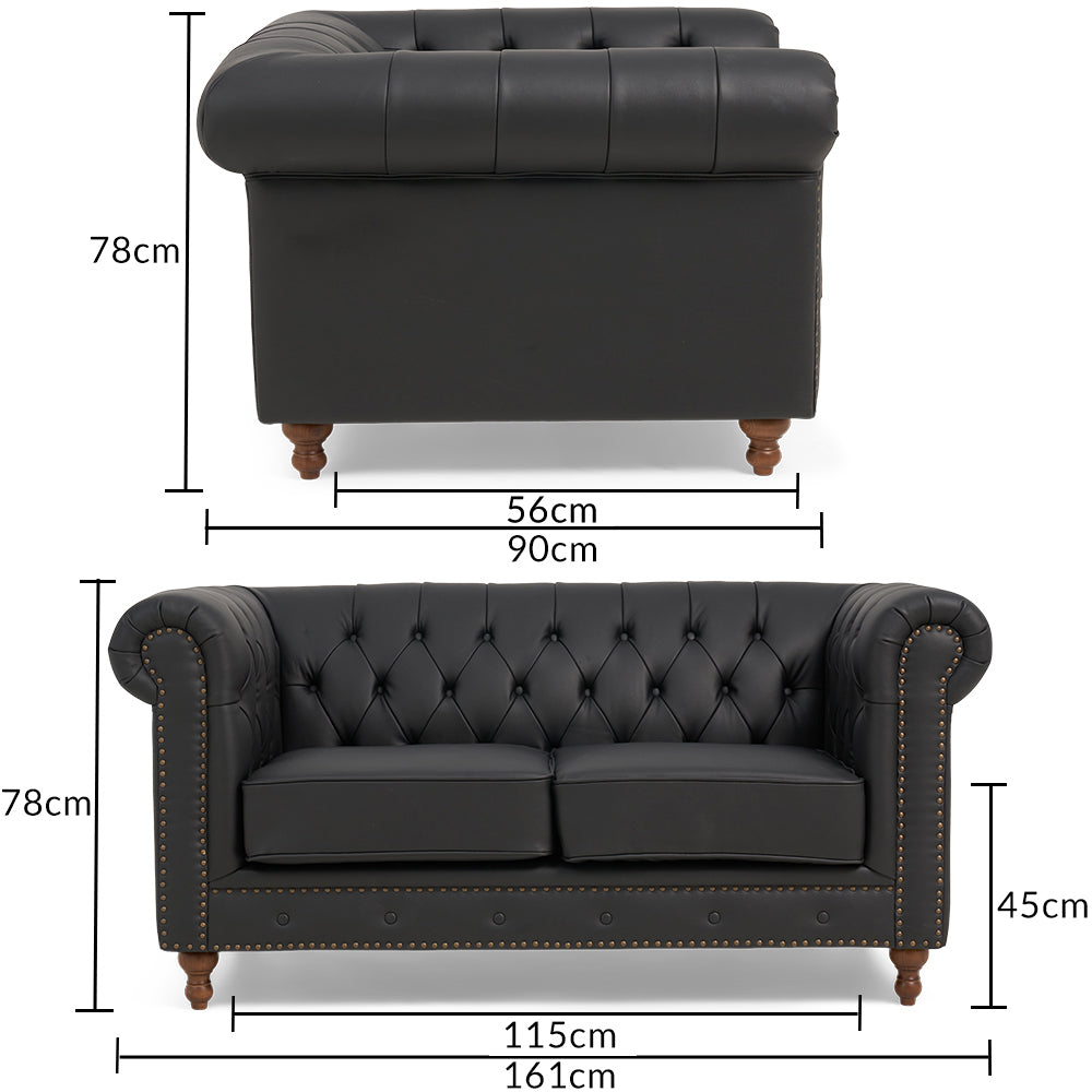Wellington Chesterfield Black Leather 2 Seater Sofa
