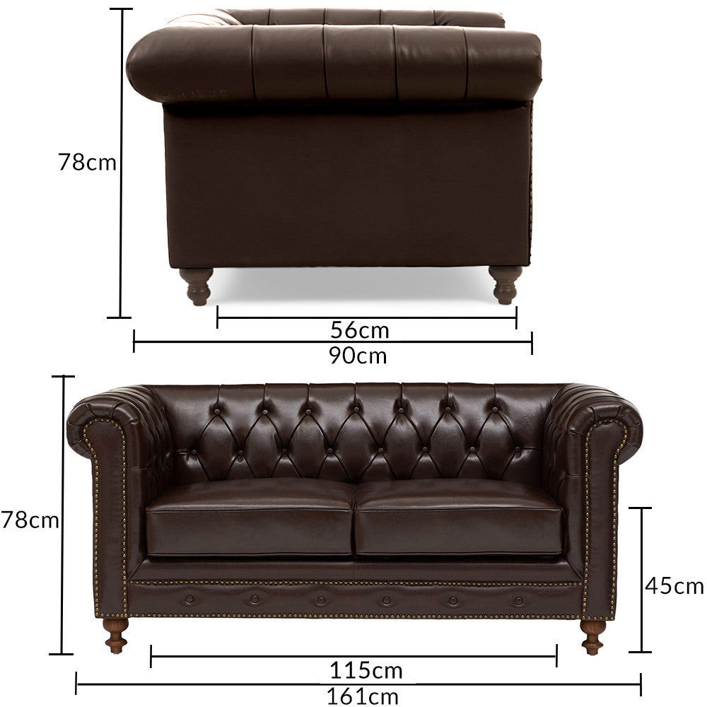 The Wellington Chesterfield Brown Leather 2 Seater Sofa brings a touch of luxury to any living room setting. Elegant and chic, the leather sofa has been carefully crafted for optimum comfort and durability.